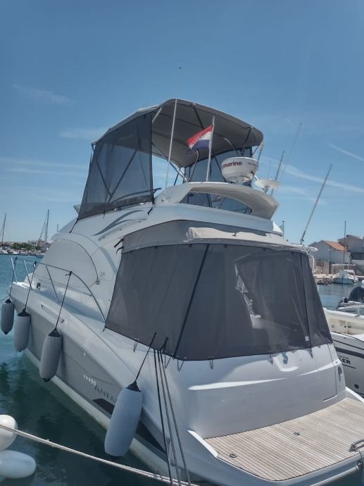 The Antares 32 boasts exceptional sea-keeping capabilities. Its twin engines enhance maneuverability in the harbor and ensure balance while underway. The expansive flybridge features a comfortable driving station and a versatile second saloon that can be converted into a sun-lounger.